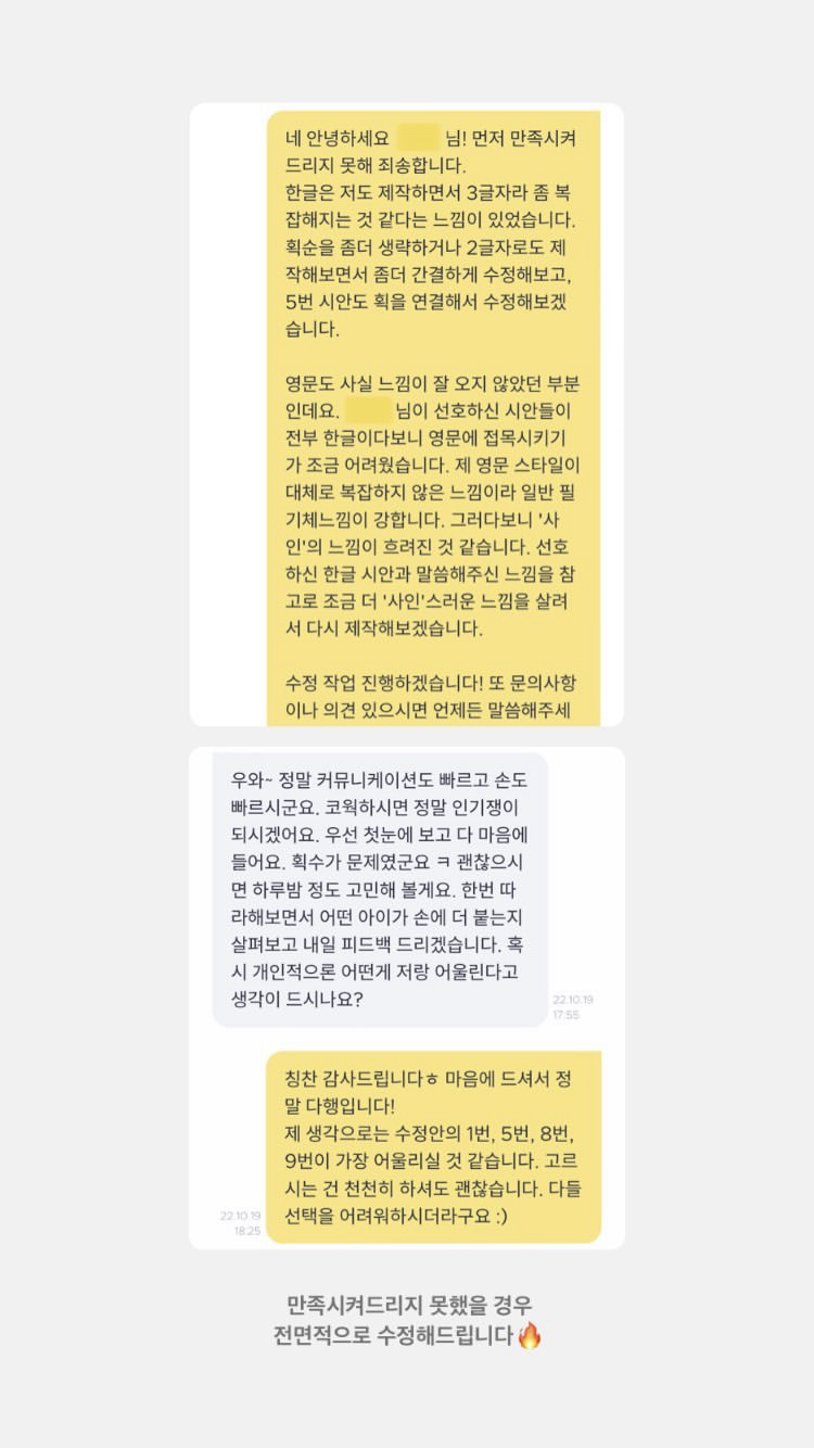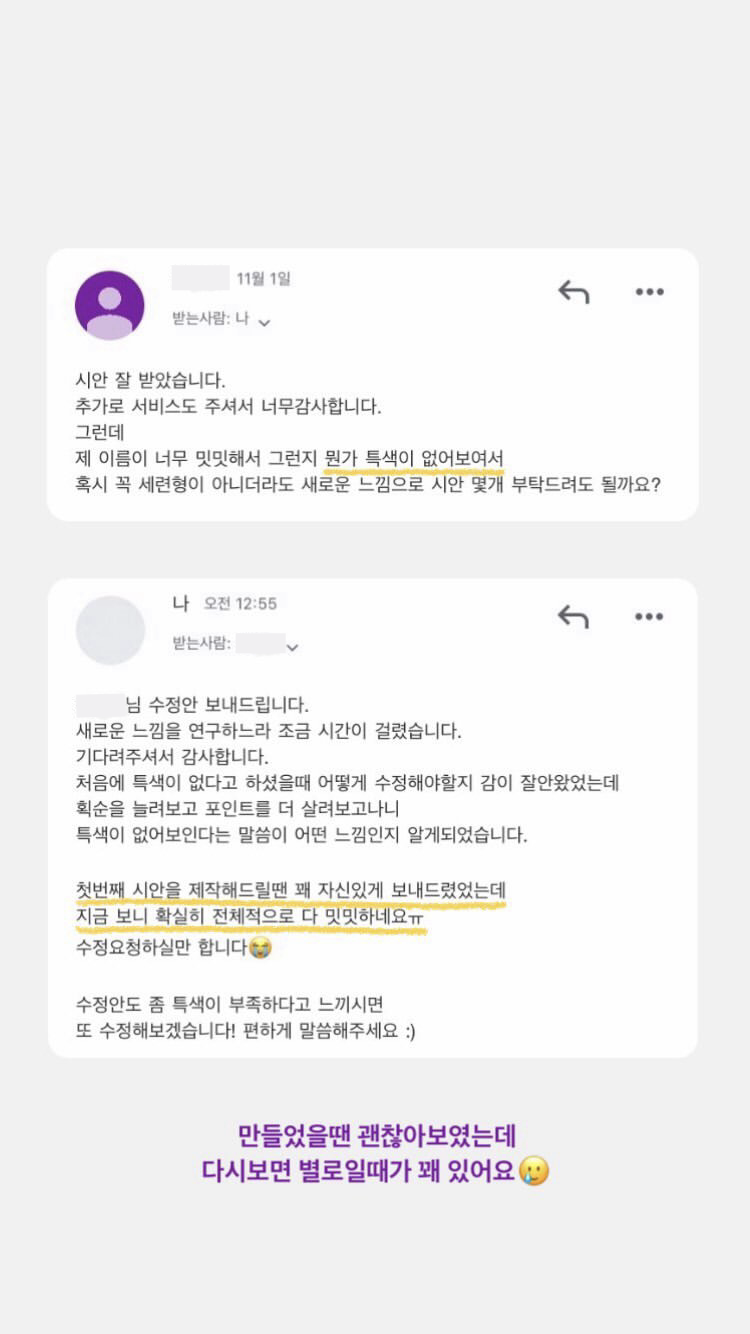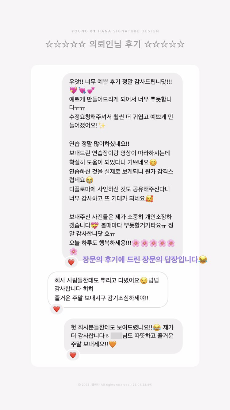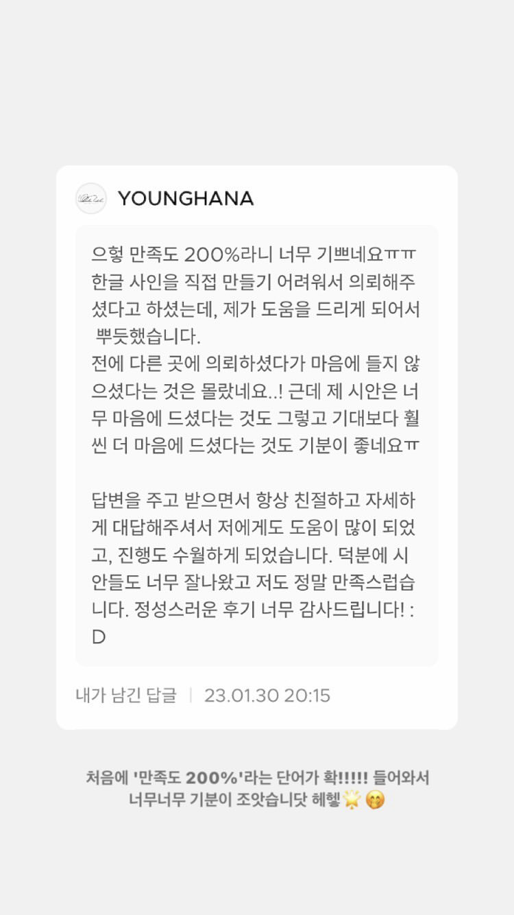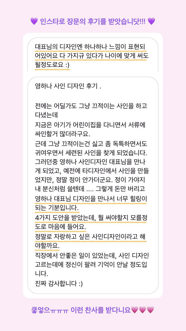 영하나 서명디자인  의뢰 후기 모음